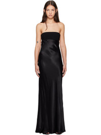 Bias-cut viscose satin and stretch polyester bonded crepe maxi dress. · Paneled construction · Non-slip silicone trim at straight neck · Hook-eye fastening at open back · Unlined Supplier color: Black Body: 100% viscose. Trim 1: 94% polyester, 6% elastane. Trim 2: 76% recycled polyester, 24% elastane. Made in Austria 251880F055003