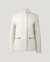 Meet the Maya jacket in Silver Birch. This women’s quilted jacket has a similar cinched and flattering silhouette to the Madison, with diamond quilting. Crafted from recycled nylon for a lightweight finish and high durability, it's a must-have piece for your wardrobe this season and beyond. DETAILS - Front zip with snap fastening placket - Adjustable tabs at waist - Hip zip pockets - Belstaff branding on left sleeve - 100% polyster (recycled) - Made in Vietnam - Dyed and woven in China - Product ref: 106200SVRBC SIZE AND FIT - Cut for a regular fit