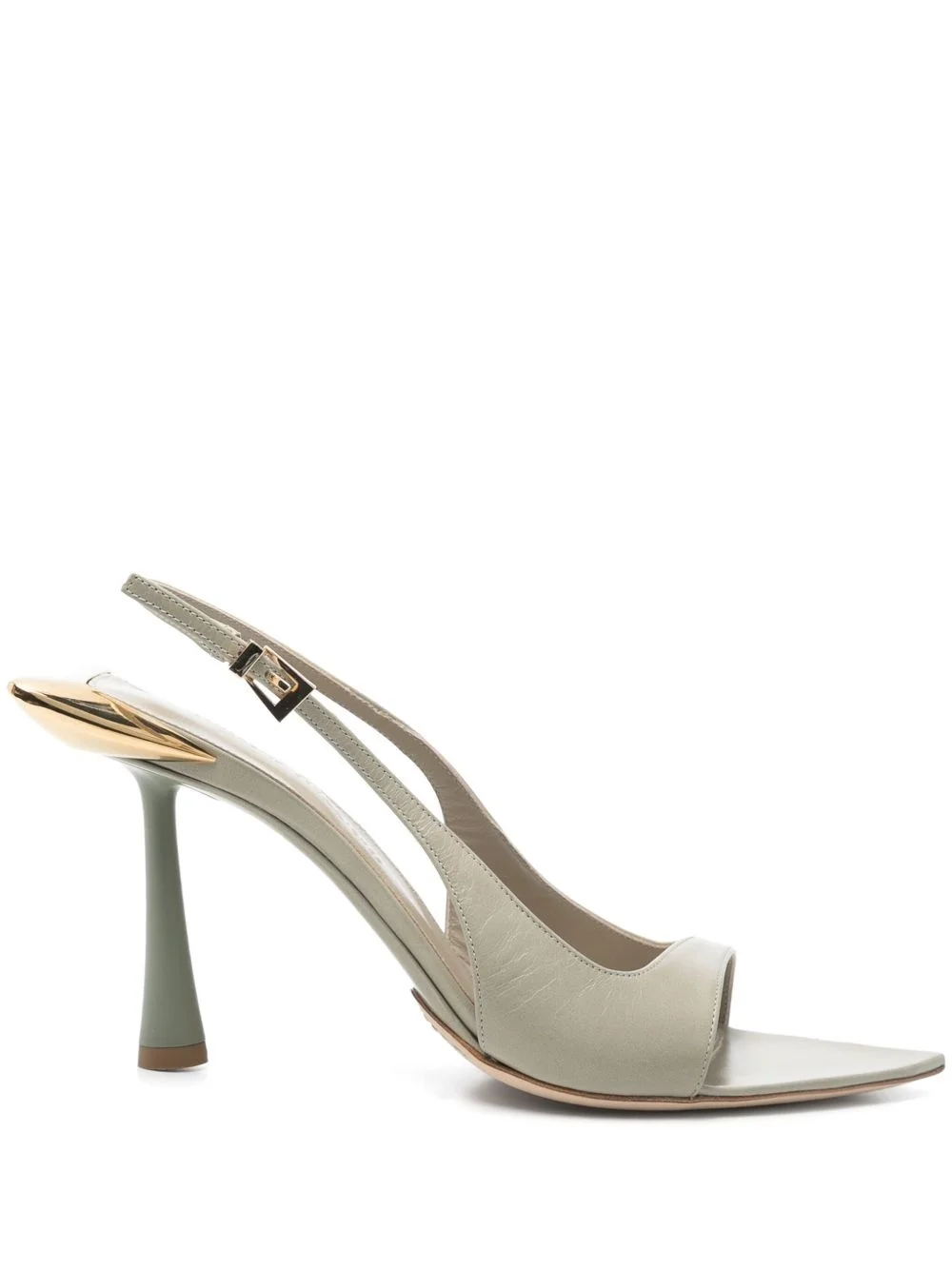 85mm leather sandals Highlights - Pepper grey - Side buckle fastening - Branded leather insole - Leather sole - Pointed toe Made in Italy Composition Lining: Calf Leather 100% Outer: Calf Leather 100% Sole: Calf Leather 100% SIZE & FIT Measurement HEEL 3.34 in(8.5 cm)