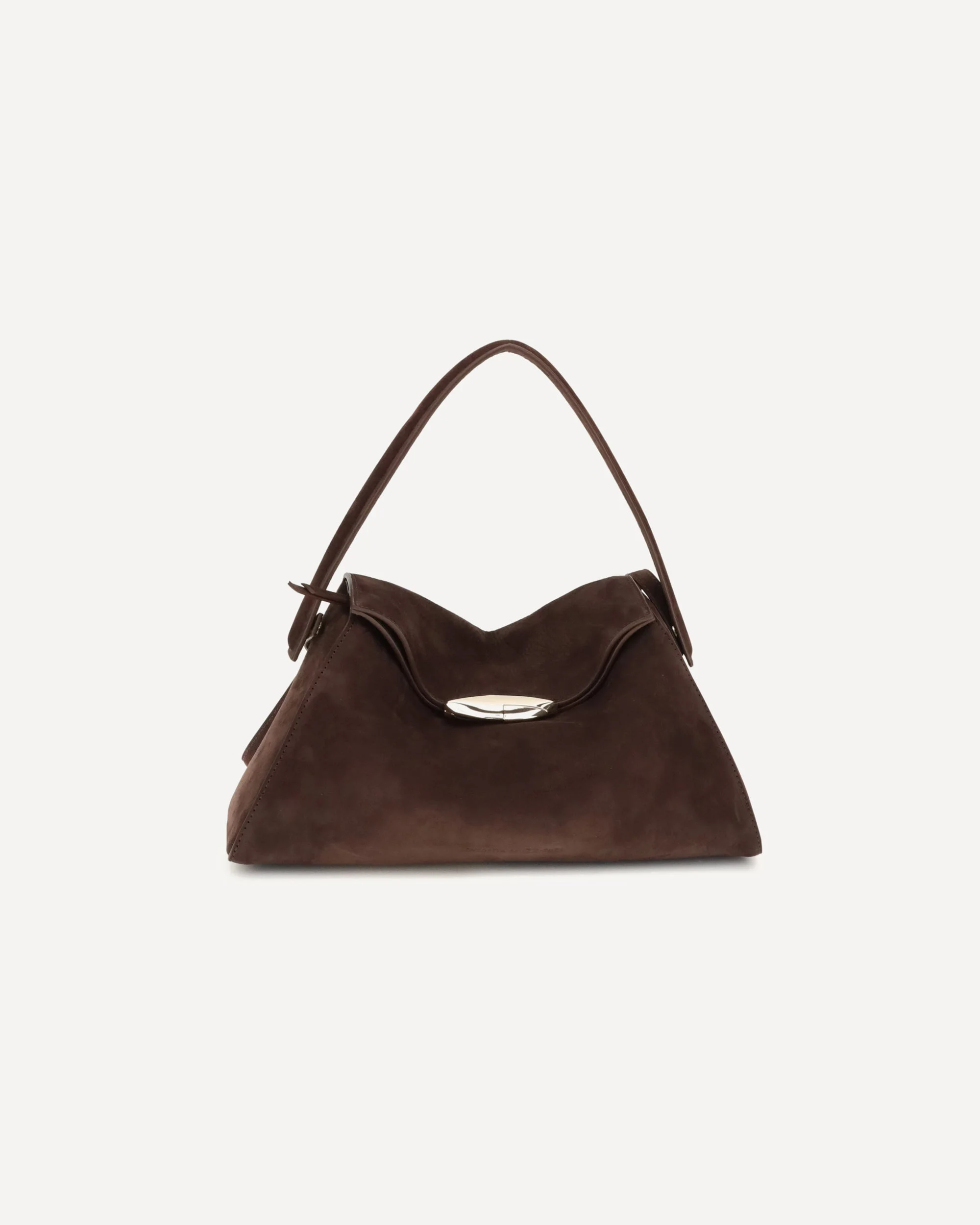The Elif Shoulder Bag by Benedetta Bruzziches combines elegance and character in an essential yet striking silhouette. Made of calf suede with Zama hardware, it features an adjustable shoulder strap and single handle for versatility that accompanies every moment of the day with style and personality. DETAILS - Sku: AI250121120_NABUKMULLE - Season: AW25 - Dimension: 25x25x9 - Composition: GENERAL 100% Calf Leather Bos Taurus - MADE IN ITALY
