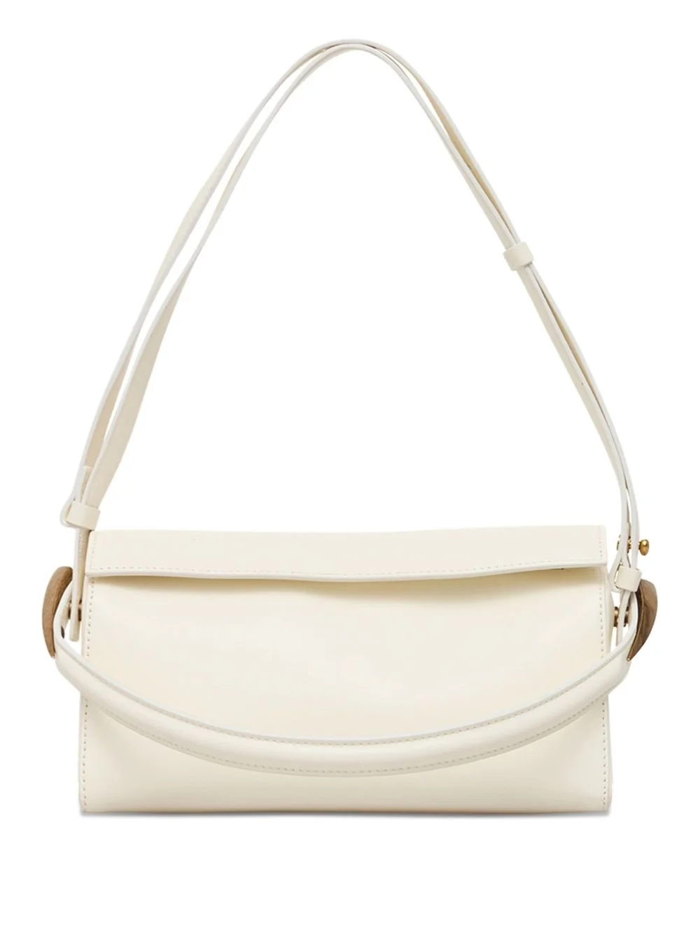 Elif tote bag Highlights - White - Single top handle - Single shoulder strap - Front flap closure - Top zip fastening Made in Italy Composition Lining: Satin 100% Outer: Nappa Leather 100% SIZE & FIT Measurement DEPTH 3.54 in(9 cm) HEIGHT 5.11 in(13 cm) WIDTH 9.84 in(25 cm) HANDLE 3.93 in(10 cm)