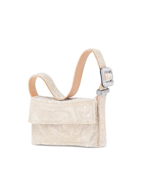 rhinestone-embellished shoulder bag Highlights - Silver-tone - Rhinestone embellishment - Adjustable shoulder strap - Foldover top - Rectangular shape - Main compartment Made in Italy Composition Lining: Silk Satin 100% Outer: Rhinestone 100%, Aluminium 100% SIZE & FIT Model measurements Height 5 ft 9 in(1.75 m) Bust/Chest 32.67 in(83 cm) Hips 36.22 in(92 cm) Waist 24.8 in(63 cm) Measurement DEPTH 1.57 in(4 cm) HEIGHT 4.72 in(12 cm) WIDTH 7.08 in(18 cm)
