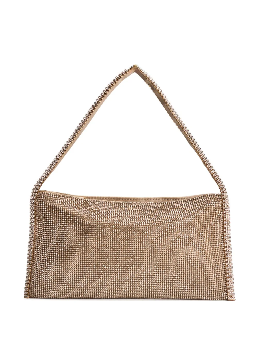 rhinestone shoulder bag Highlights - Gold-tone - Rhinestone embellishment - Top zip fastening - Top handle Imported Composition Outer: Fabric 100%, glass 100%