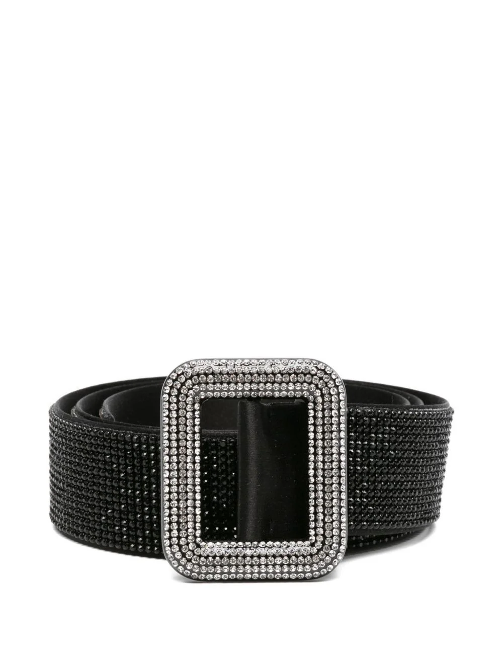 crystal-embellished buckle belt Highlights - Black - Crystal embellishment - Rectangular buckle - Satin finish - Silver-tone buckle Made in Italy Composition Fabric 100%, glass 100% SIZE & FIT Measurement TOTAL LENGTH 39.37 in(100 cm) WIDTH 1.57 in(4 cm)