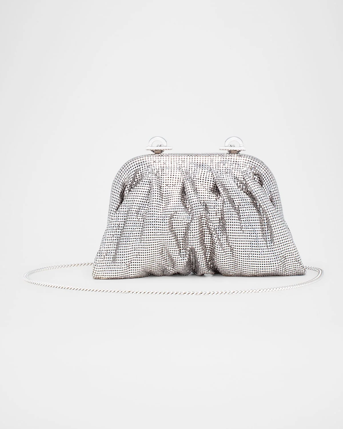 This Benedetta Bruzziches "Venus La Petite" clutch bag is designed in shimmering mirrored metallic mesh, finished with pleats and folds for a softly rippled texture Detachable chain shoulder strap Can be worn as a clutch or shoulder bag Framed top Silk satin lining Approx. 4.7"H x 8.7"W x 2.2"D Professional cleaning recommended Made in Italy