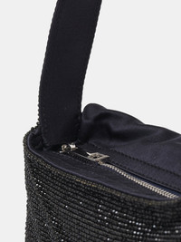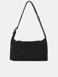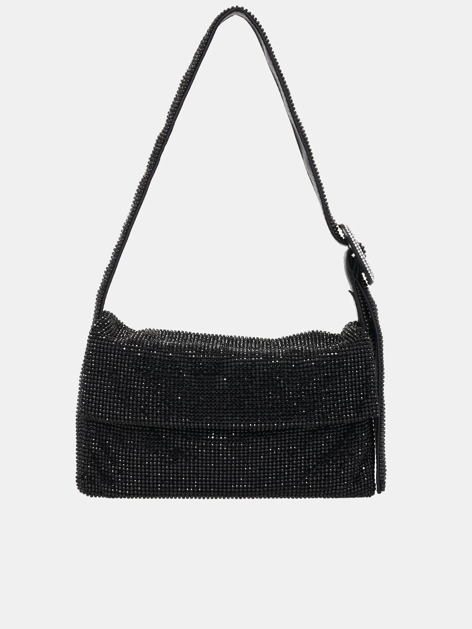 BENEDETTA BRUZZICHES bag in black, handmade, silk-satin, aluminum mesh, crystal rhinestone embellished, adjustable shoulder strap, flap & zip closure. Made in Italy External - 100% Aluminum Mesh, Crystal Internal - 100% Organic Silk 12cm H, 3cm D, 18cm W