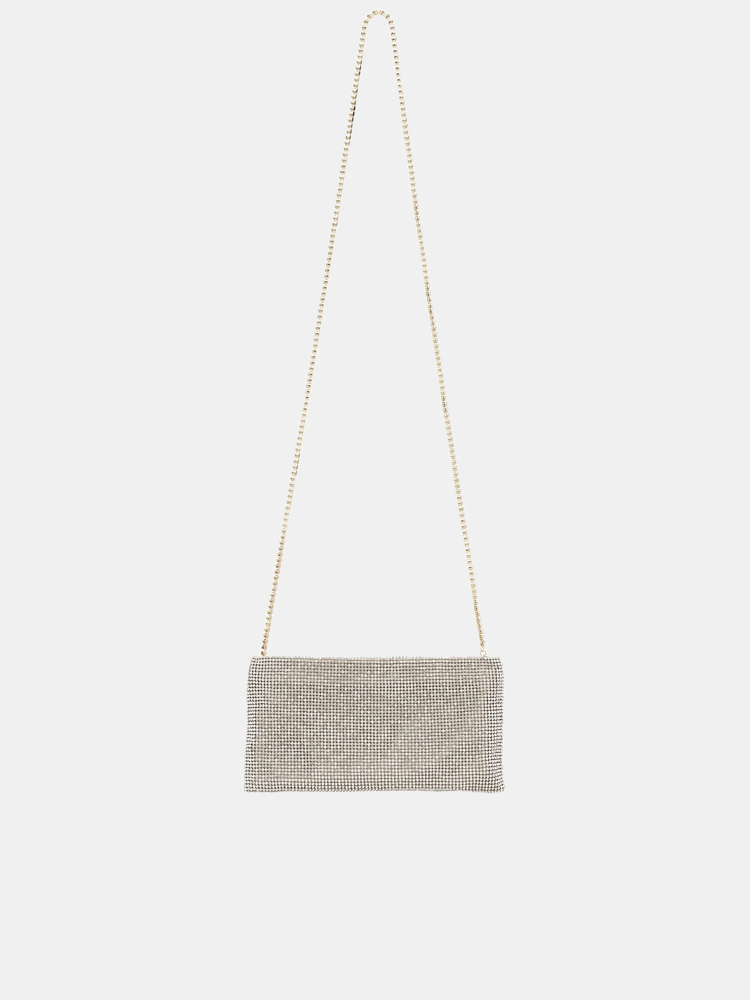 BENEDETTA BRUZZICHES bag in ivory, handmade, silk-satin, aluminum mesh, crystal rhinestone embellished, crossbody strap, zip closure. Made in Italy External - 100% Aluminum Mesh, Crystal Internal - 100% Organic Silk 10cm H, 1cm D, 20cm W