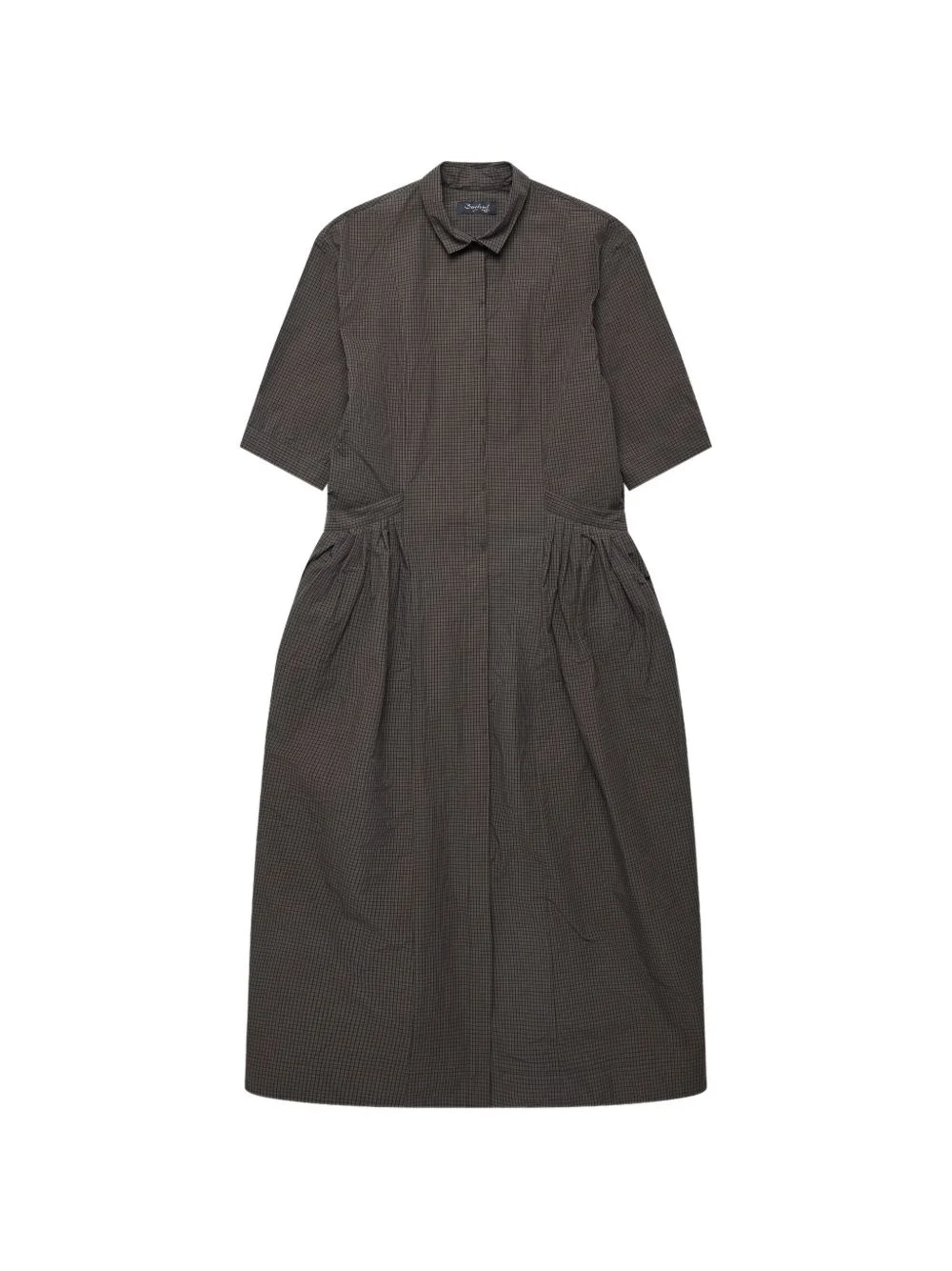 Sally checked midi dress Highlights - Brown - Check pattern - Classic collar - Half-length sleeves - Gathered detail - Concealed front fastening - Mid-length Made in Italy Composition Cotton 100% Washing instructions Read Manufacturer Guidelines