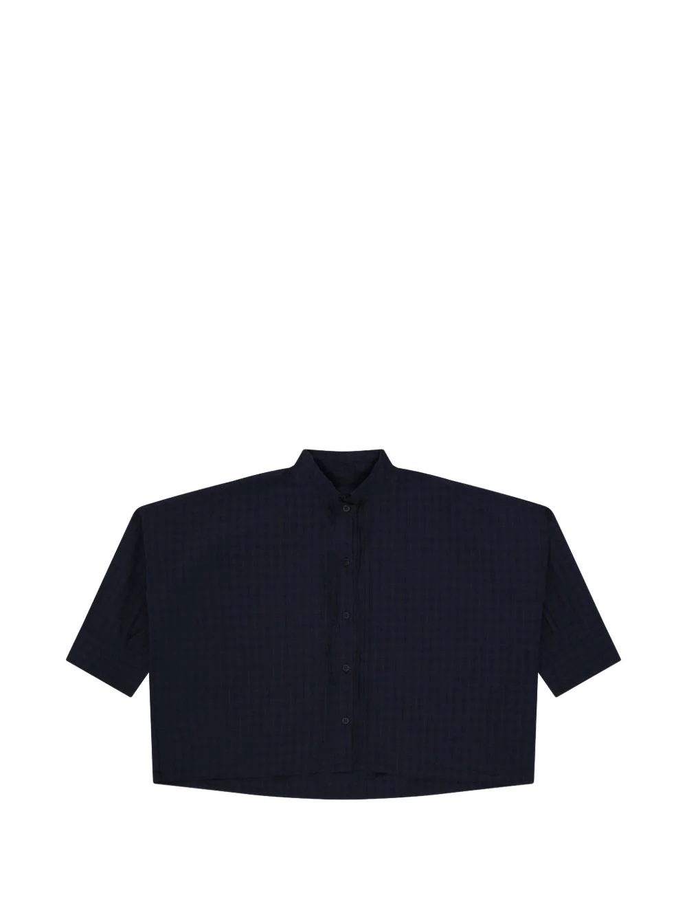 short-sleeve buttoned shirt Highlights - Navy blue - Check pattern - Front button closure - Band collar Imported Composition Fabric 100% Washing instructions Read Manufacturer Guidelines