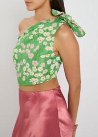 Info & Care Bernadette shell top Floral print, asymmetric neck, knot detail at shoulder, fully lined Concealed zip fastening at side; 100% polyester Dry clean Size & Fit Length shoulder to hem: 14.4 inches/ 37cm Midweight Cropped fit Model is 5'10"/ 178cm and wears a size;FR36