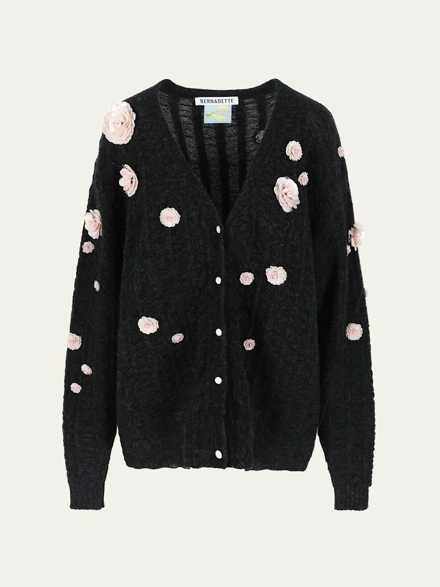 BERNADETTE "Cammi" luxurious summer knit cardigan crafted from soft Alpaca wool and hand-embroidered with Camellias V neckline; button front Long sleeves Relaxed fit Wool/nylon/polyamide Dry clean Made in Romania Online Inquiries: BGS21_B9SG4| Store Inquiries: #4955985