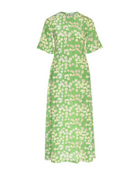 Introducing dress Marjorie—a quintessential BERNADETTE summer piece crafted from 100% silk. Adorned with our hand-drawn buttercup print on green, this dress features a high round neckline, a waist-defining design, and a silhouette that flows gracefully. Product information Charlotte is 168cm / 5'6" and wears size EU34. Dress Marjorie fits true to size. For size inquiries, e-mail sales@bernadetteantwerp.com. Fabrics from Italy Made in Romania 100% SE