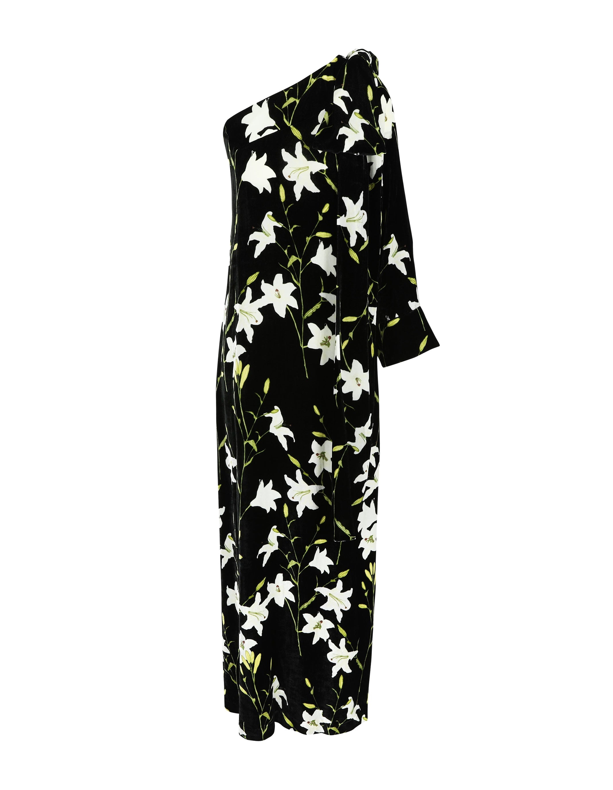 Dress Nel is where luxury and elegance intertwine. Cut from a rich silk velvet fabric, this dress features a big velvet bow on the left shoulder, lending the other side for a tasteful off-the-shoulder moment. Nel is pure elegance that won't go unnoticed. Product information Charlotte is 168 cm / 5'6" and wears size EU34. Tes is 174 cm / 5'8" and wears size EU36. Dress Nel fits true to size, featuring a bow on the shoulder and an accentuated waistline. For size inquiries, e-mail sales@bernadetteantwerp.com. Fabrics from Italy Made in Romania 75% VI 25% PA