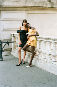 Dress Sacha is a strapless, short dress with a BERNADETTE twist. Cut out of light taffeta fabric, this dress features off-the-shoulder straps that elegantly rest on the upper part of your arm. Finished off with a rose in the middle of the neckline and our signature big bow in the back. Making everyone feel "Sasha Fierce" when walking into a room. Product information Charlotte is 168 cm / 5'6" and wears size FR34. Dress Sacha fits true to size. Fabrics from Italy Made in Romania 78% PL 20% PA 2% EA