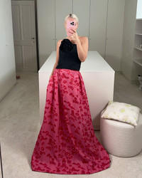 Introducing the Ella skirt — a dreamy fusion of flowing elegance and playful charm. Adorned with our in-house Cosmos print, this voluminous skirt can be worn high or low-waisted and features side seam pockets for an added touch of coolness. Pair it with the brooched Lena top for a complete look. Product information Charlotte is 168m / 5'6" and wears size EU36. Jools is 176cm / 5'9" and wears size EU36. Take a size down if you prefer to wear it high-waist. For size inquiries, e-mail sales@bernadetteantwerp.com. Fabrics from Italy Made in Romania 100% PL