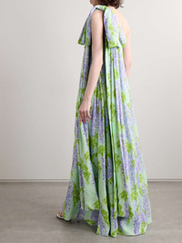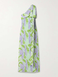 Gala one-shoulder draped floral-print crepe maxi dress