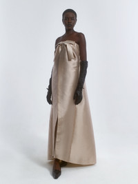 Dress Jacques arrives in a beige hue, sculpted in a refined bustier silhouette crowned with a bow at the top. The layered design opens softly at the front, creating a cape-like movement that flows into a sweeping skirt. Product information Charlotte is 168cm / 5'6" and wears size EU34. Tumbush is 173 cm / 5’8” and wears size EU36. Dress Jacques fits true to size. Take your usual size. For size inquiries, e-mail sales@bernadetteantwerp.com. Fabrics from Italy Made in Romania 85% PL 15% SE