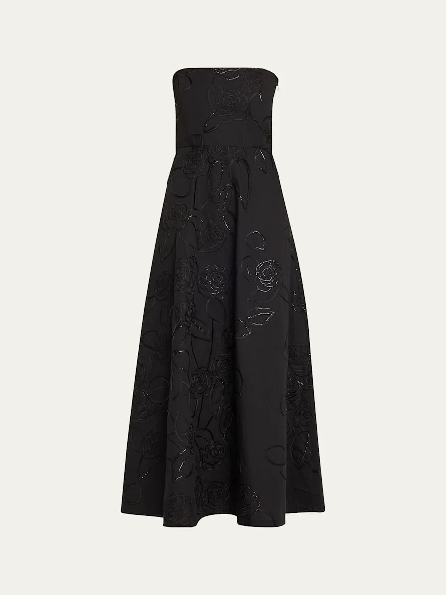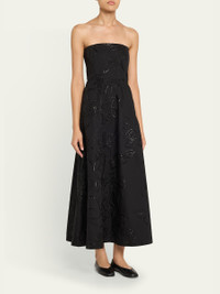 BERNADETTE "Odette" dress embellished with camelia floral sequin embroidery Strapless neckline Sleeveless Hem falls below the knee A-line silhouette Side zip Cotton Unlined Imported Online Inquiries: BGS21_B9SBS| Store Inquiries: #4955340