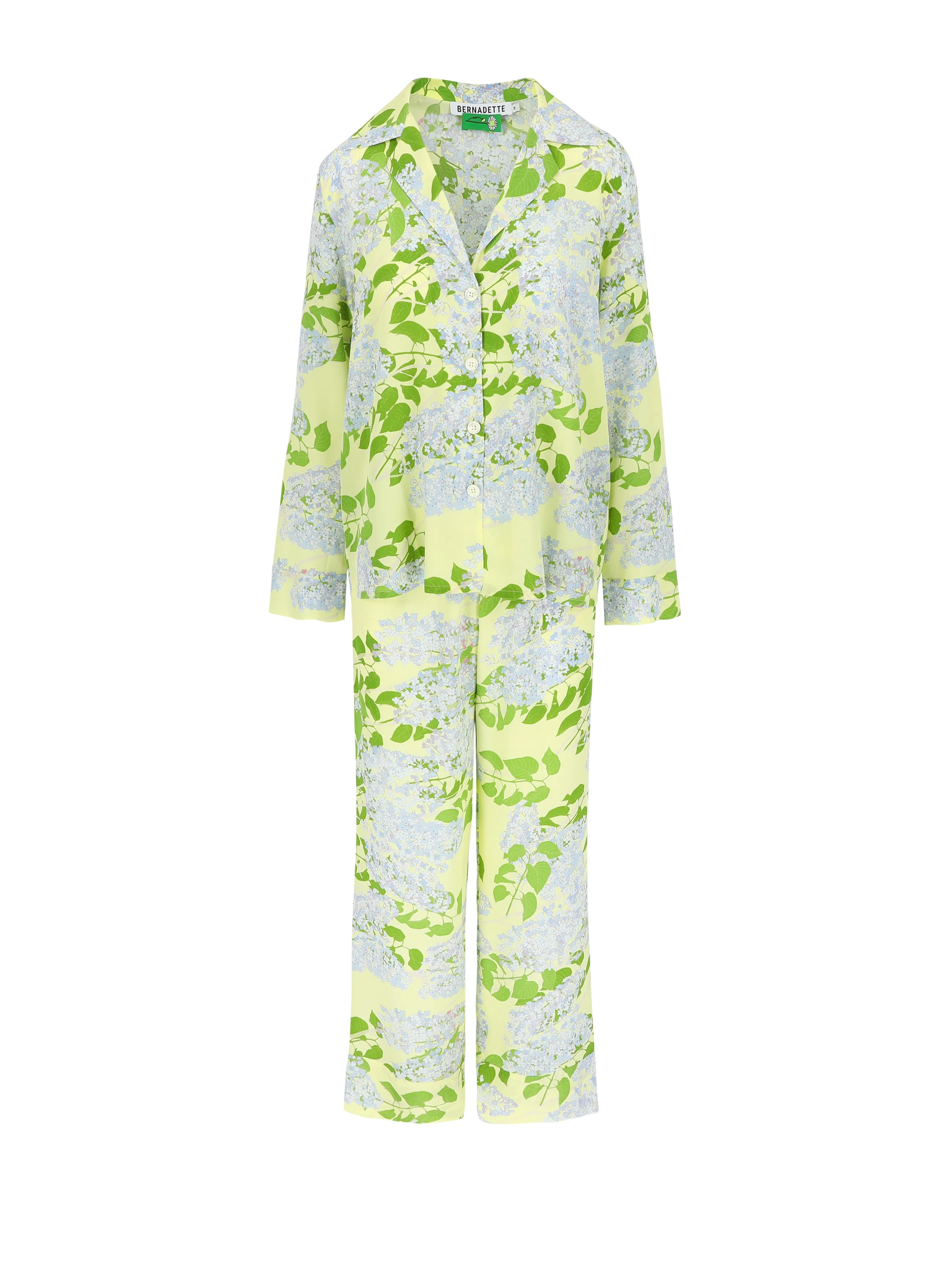The signature BERNADETTE pajamas are crafted out of fine silk, made to be worn on every occasion of the day. The Louis PJ has an oversized fit. Wear yours during your morning coffee, out to brunch, or end your day with a garden dinner. That's what we call effortless elegance. Product information Charlotte is 168 cm / 5'6" and wears size FR34. PJ Louis fits true to size and has an oversized fit. Fabrics form Italy Made in Portugal 92% SE 8% EA