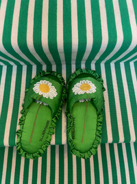 Indulge in the BERNADETTE world with this dreamy set of a hand-embroidered sleeping mask and slippers. The slippers feature a lightly cushioned sole that adds an extra touch of comfort, making every step a delightful experience. The sleeping mask offers pure softness that caresses your face softly into a deep and well-deserved night rest. Paired together, this set creates the perfect combination to enjoy an easy sunday morning. Product information For the sleeping mask: fits one size. For the slippers: Charlotte has shoe size EU36, and wears size S. DIMENSIONS: Size S: 23.5cm / 9.3" (for shoe sizes EU35 & EU36) Size M: 25cm / 9.8" (for shoe sizes EU37, EU38 & EU39) Size L: 26.5cm / 10.4" (for shoe sizes EU40 & EU41) The dimensions are measured following Japanese sizing, measured from heel to toe from the bottom of the foot. When you are in between sizes, we would opt for the size up. For size inquiries, e-mail sales@bernadetteantwerp.com. Fabrics from Italy Made and hand-embroidered in India 100% SE