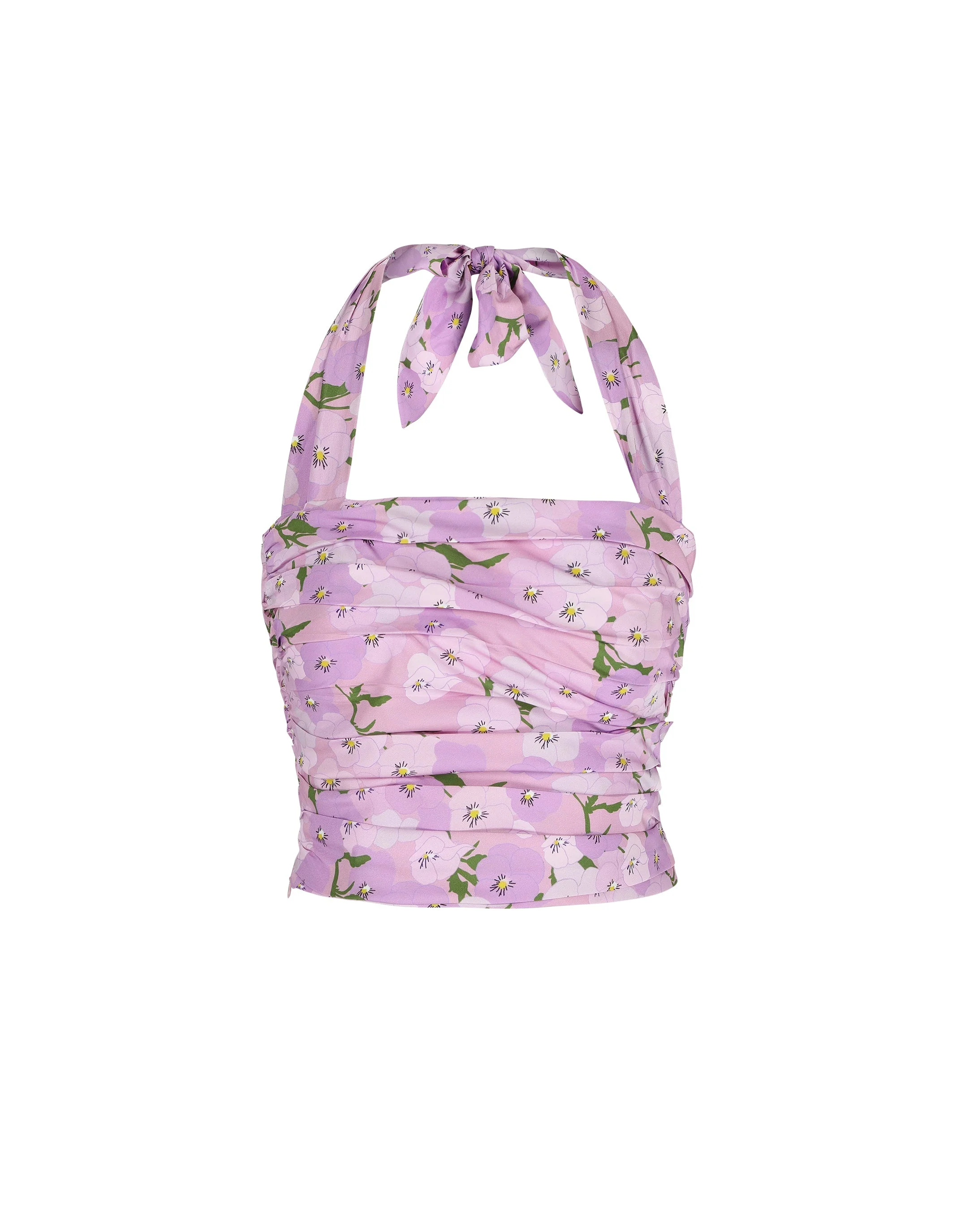 The Tippy top is a strapless top, with a BERNADETTE twist. Tippy has a straight neckline, featuring printed violets pleats - cut from a light and crisp taffeta fabric. Combine the Tippy with the matching Ella skirt, or make it playful with a jeans, you can't go wrong either way. Product information Charlotte is 168 cm / 5'6" and wears size EU34. Tes is 177 cm / 5'8" and wears size EU36. Tippy top fits true to size. For size inquiries, e-mail sales@bernadetteantwerp.com. Fabrics from Italy Made in Romania 77% PL 18% PA 5% EA