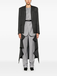 x Zegna Transformer collarless coat Highlights - Medium grey - Wool blend - Interwoven design - Collarless - V-neck - Shoulder pads - Long sleeves with buttoned cuffs - Logo tag to the sleeve - Chest welt pocket - Dart detailing - Two front jetted pockets - Adjustable-length - Multiple internal slip pockets - Full lining - Open front Imported Composition Outer: Wool 60%, Silk 30%, Linen/Flax 10% Lining: Viscose 100% SIZE & FIT Model measurements Height 5 ft 9 in(1.76 m) Bust/Chest 31.88 in(81 cm) Hips 35.43 in(90 cm) Waist 24.8 in(63 cm) FittingInformation Designed to be unstructured, offering a loose fit throughout The internal shoulder pads offer a structured shape Made from a midweight non-stretch fabric This piece fits true to size – take your usual size