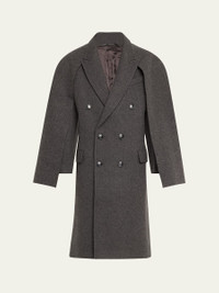 bettter "Andes" heavy coat Removable scarf can be styled in multiple ways Peak lapels; double-breasted Long sleeves; approx. 24.0"L Chest pocket; waist flap pockets Oversized fit Wool Viscose lining Professional cleaning recommended Made in Portugal Online Inquiries: BGS21_B9PQR| Store Inquiries: #4937619