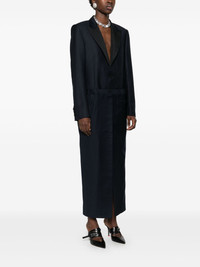 x GH Lee coat Highlights - Navy blue - Front button fastening - Chest welt pocket - Detachable panels - English rear vents Imported Composition Outer: Wool 100% Lining: Cupro 100%, Viscose 100% SIZE & FIT Model measurements Height 5 ft 11 in(1.8 m) Bust/Chest 32.67 in(83 cm) Hips 36.22 in(92 cm) Waist 24.4 in(62 cm) FittingInformation Designed for a slim fit that sits just away from the body offering a close yet comfortable fit The detachable panel offers the preference for a different fit Made from a midweight non-stretch fabric