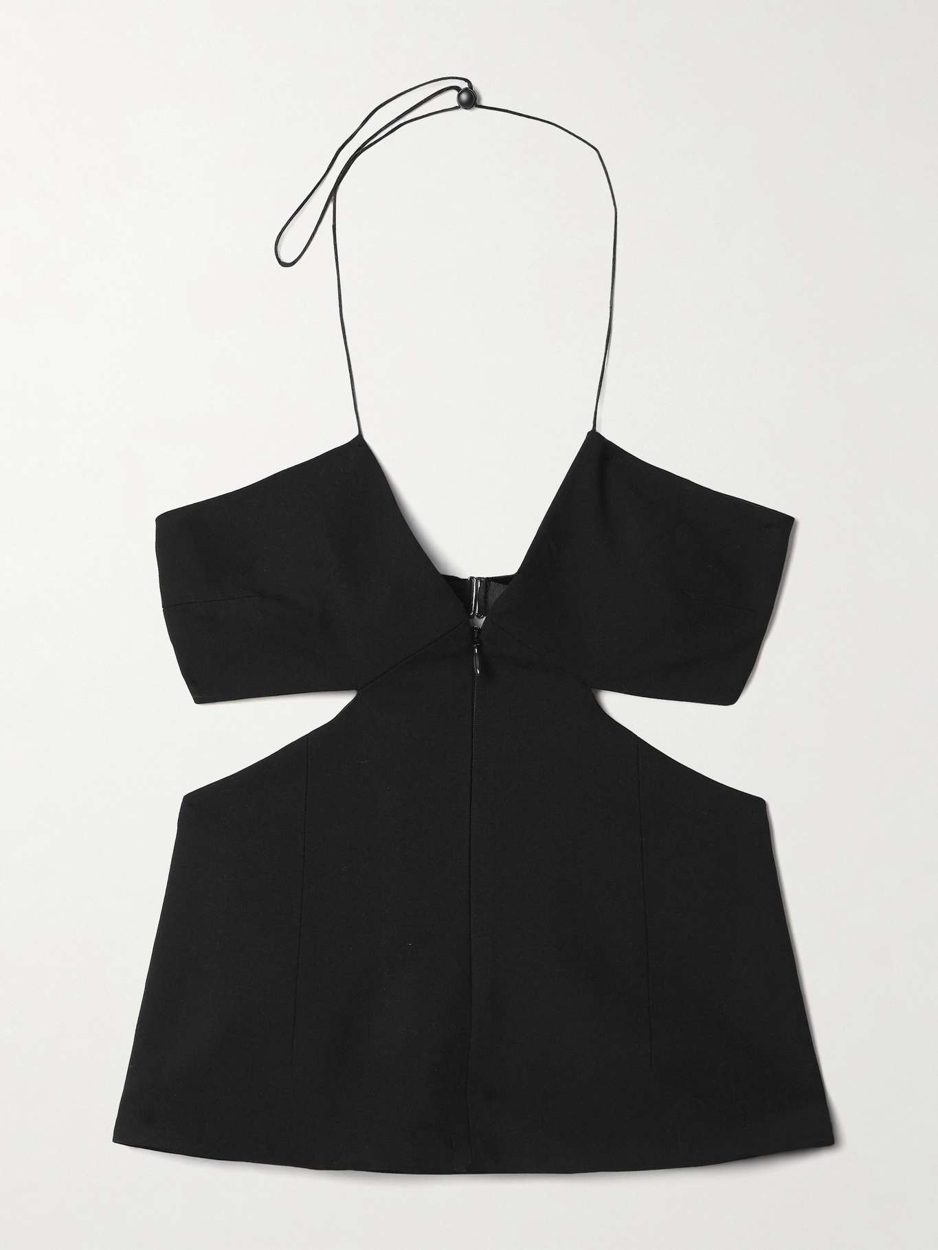 BETTTER's unexpected designs are a result of the brand's upcycling process, which begins with the fabric of deadstock suiting. Suspended from slim halterneck ties, his 'Capote' top is cut from a combination of wool-blend and satin and is spliced with cutouts at the sides. Designed for Circularity. This product promotes lasting style and reduces waste by enhancing longevity, reuse or end-of-life solutions. Find out more about our NET SUSTAIN criteria here. Size & Fit - Fits true to size, take your normal size - Cut for a close fit - Mid-weight, non-stretchy fabric - Model is 177cm/ 5'10" and is wearing a size Small Model measurements: - Bust: 79cm/ 31" - Waist: 61cm/ 24" - Hip: 88.9cm/ 35" Details & Care - Black wool-blend and satin - Adjustable slider fastening at neck, clasp at back - Fabric1: 98% wool, 2% elastane; fabric2: 95% polyester, 5% elastane - Green dry clean - Each BETTTER garment comes with a scannable Care Passport, which provides its fabric source and production history