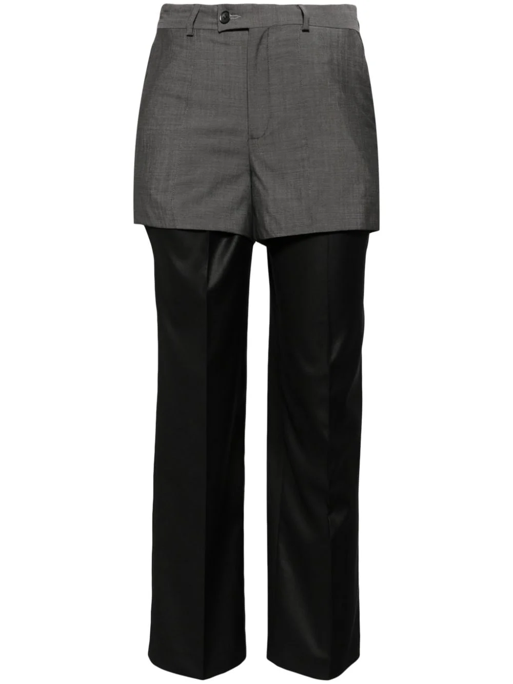 layered straight trousers Highlights - Black/grey - Wool blend - Layered design - Pressed crease - Belt loops - Concealed fly and button fastening - Slip pockets to the sides - Two rear jetted pockets - Straight leg Imported Composition Wool 94%, Lycra 4%, Elastane 2% SIZE & FIT Model measurements Height 5 ft 10 in(1.77 m) Bust/Chest 31.49 in(80 cm) Hips 35.43 in(90 cm) Waist 25.19 in(64 cm) FittingInformation Designed for a straight-leg fit, these trousers allow for a close fit at the waist and an unrestricted, comfortable fit over the leg Made from a midweight non-stretch fabric This piece fits true to size – take your usual size