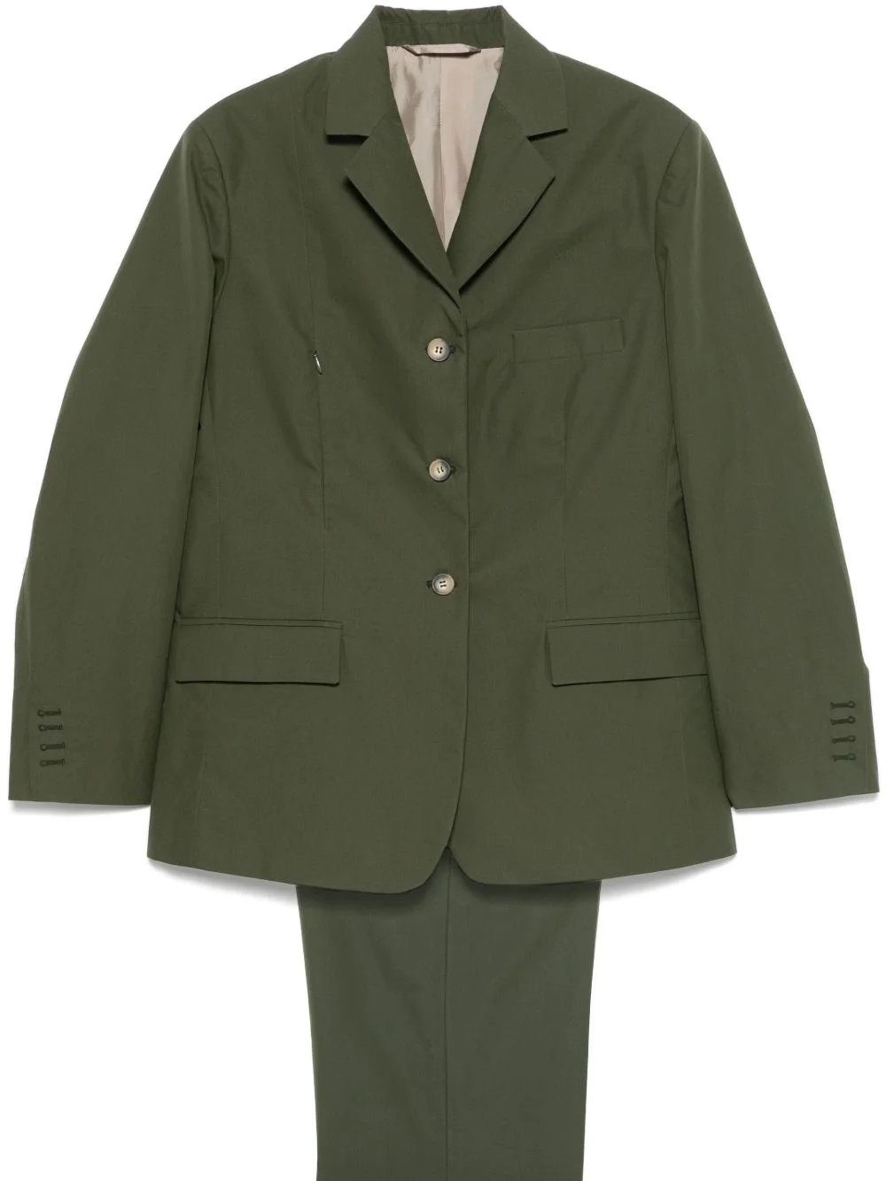 Everest suit Highlights - Khaki - Front button fastening - Concealed front fastening - Shoulder pads - Two side flap pockets Imported Composition Outer: Cotton 100% Lining: Cotton 100% SIZE & FIT Model measurements Height 5 ft 11 in(1.8 m) Bust/Chest 32.67 in(83 cm) Hips 36.22 in(92 cm) Waist 24.4 in(62 cm) FittingInformation Designed as separates, with a loose fit over the torso whilst the trousers offer a straight-leg cut allowing an unrestricted and comfortable fit over the leg The internal shoulder pads offer a structured shape Made from a midweight non-stretch fabric