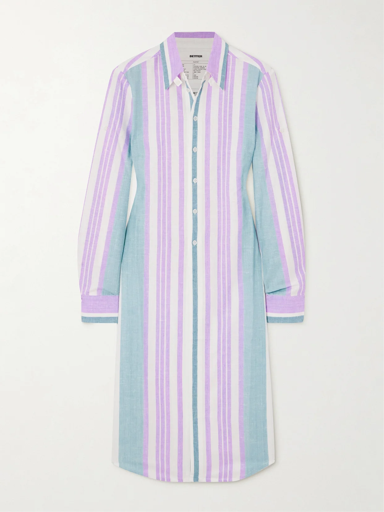 BETTTER's 'Lorca' midi dress comes with a passport, which details where its linen was originally sourced - the upcycled fabric means each piece is one-of-a-kind. Subtly tapered at the waist, it's tailored in an elegant shirt-inspired silhouette with a medley of stripes running throughout.