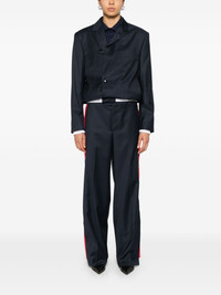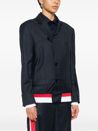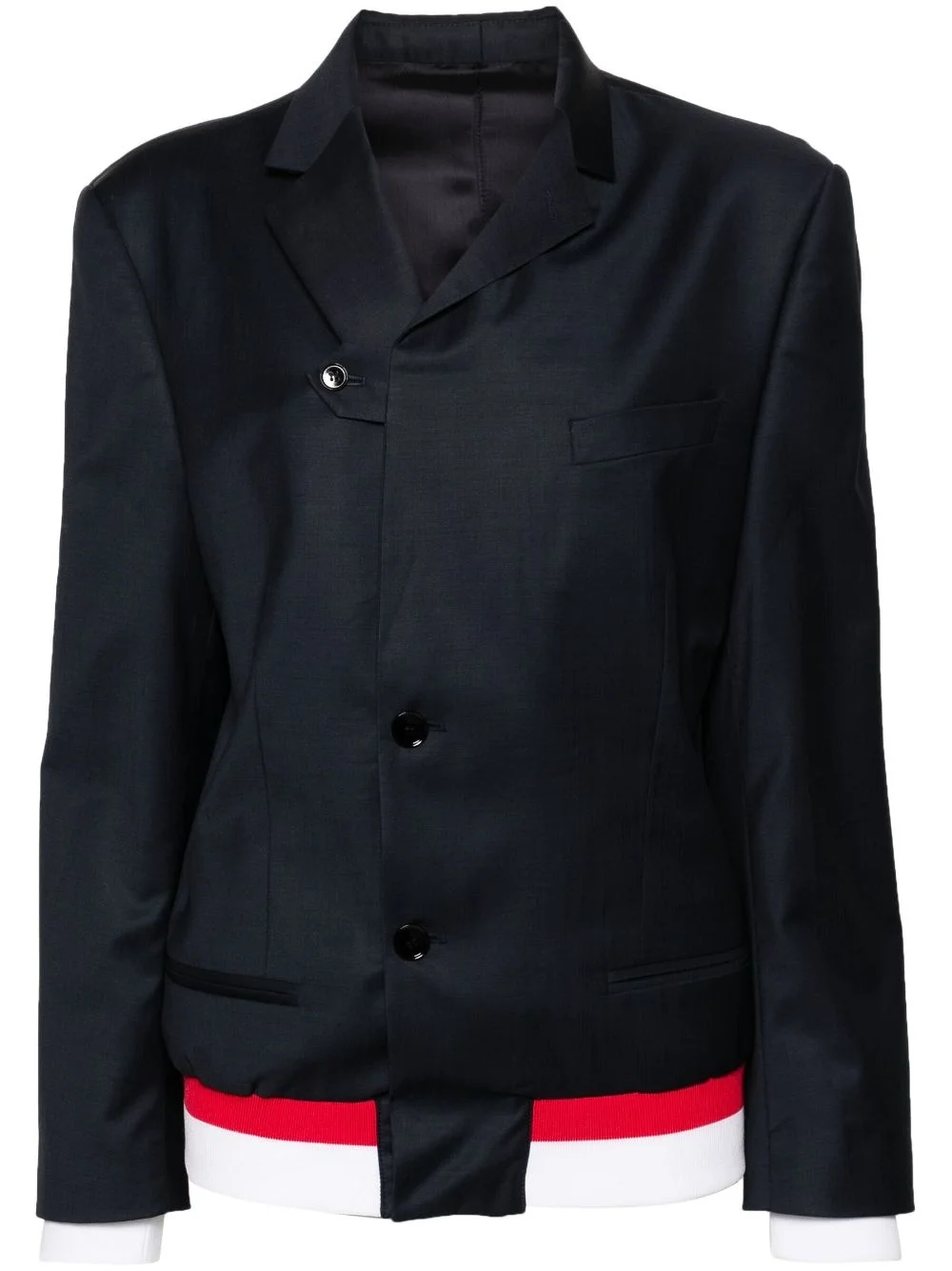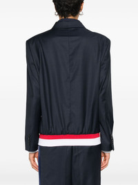 x Fila notched-lapels bomber-blazer Highlights - Navy blue - Wool blend - Contrasting border - Notched lapels - Shoulder pads - Long sleeves - Buttoned cuffs - Stripe detailing - Ribbed cuffs - Chest welt pocket - Dart detailing - Two front jetted pockets - Ribbed hem - Internal slip pocket - Full lining - Front button fastening Imported Composition Wool 80%, Viscose 20% SIZE & FIT Model measurements Height 5 ft 9 in(1.76 m) Bust/Chest 31.88 in(81 cm) Hips 35.43 in(90 cm) Waist 24.8 in(63 cm) FittingInformation Designed for a relaxed fit, this piece allows for comfort and movement when worn The ribbed hem offers a close, comfortable fit Made from a midweight non-stretch fabric This piece fits true to size – take your usual size Washing instructions Dry Clean Only