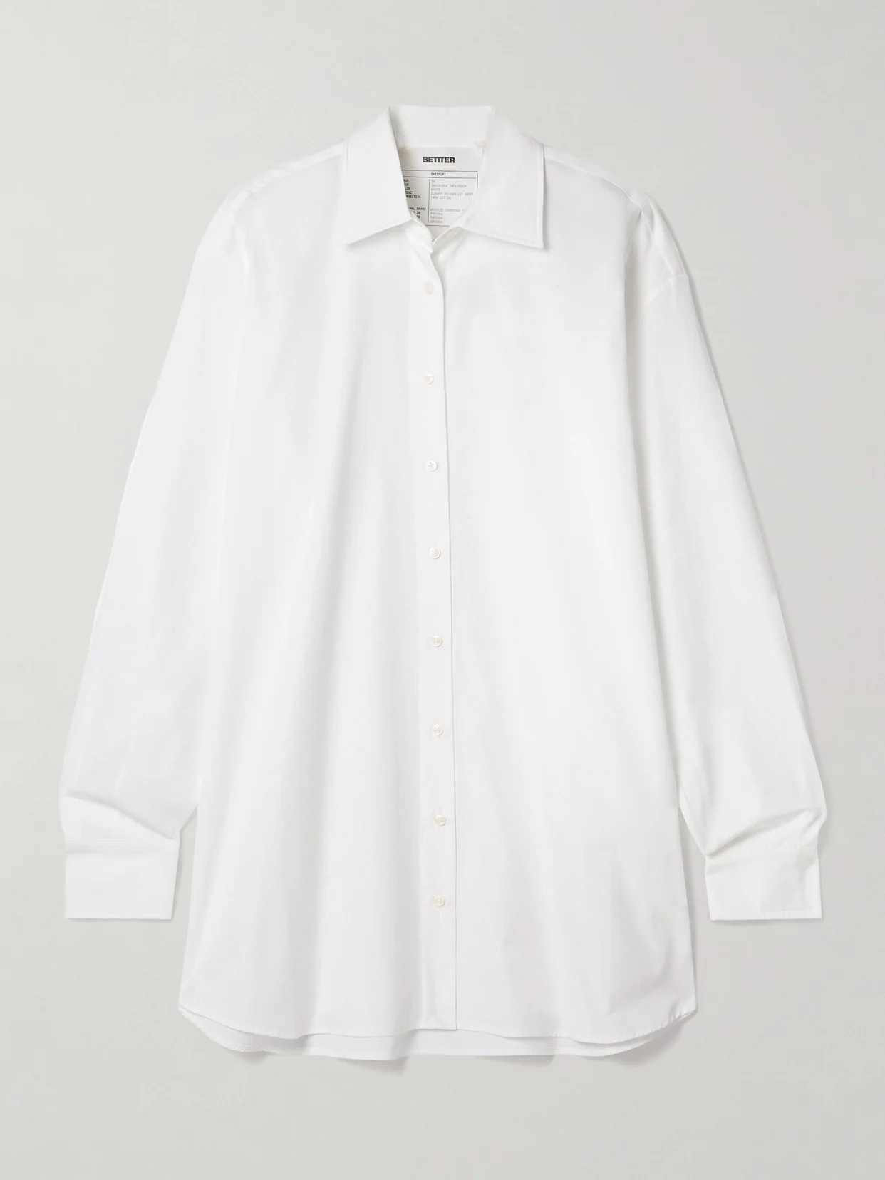 BETTTER turns vintage pieces into chic, contemporary designs - this classic collared shirt is upcycled from deadstock cotton-poplin that would otherwise be discarded. It has an oversized fit with dropped shoulders and a curved hem. Designed for Circularity. This product promotes lasting style and reduces waste by enhancing longevity, reuse or end-of-life solutions. Find out more about our NET SUSTAIN criteria here.