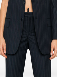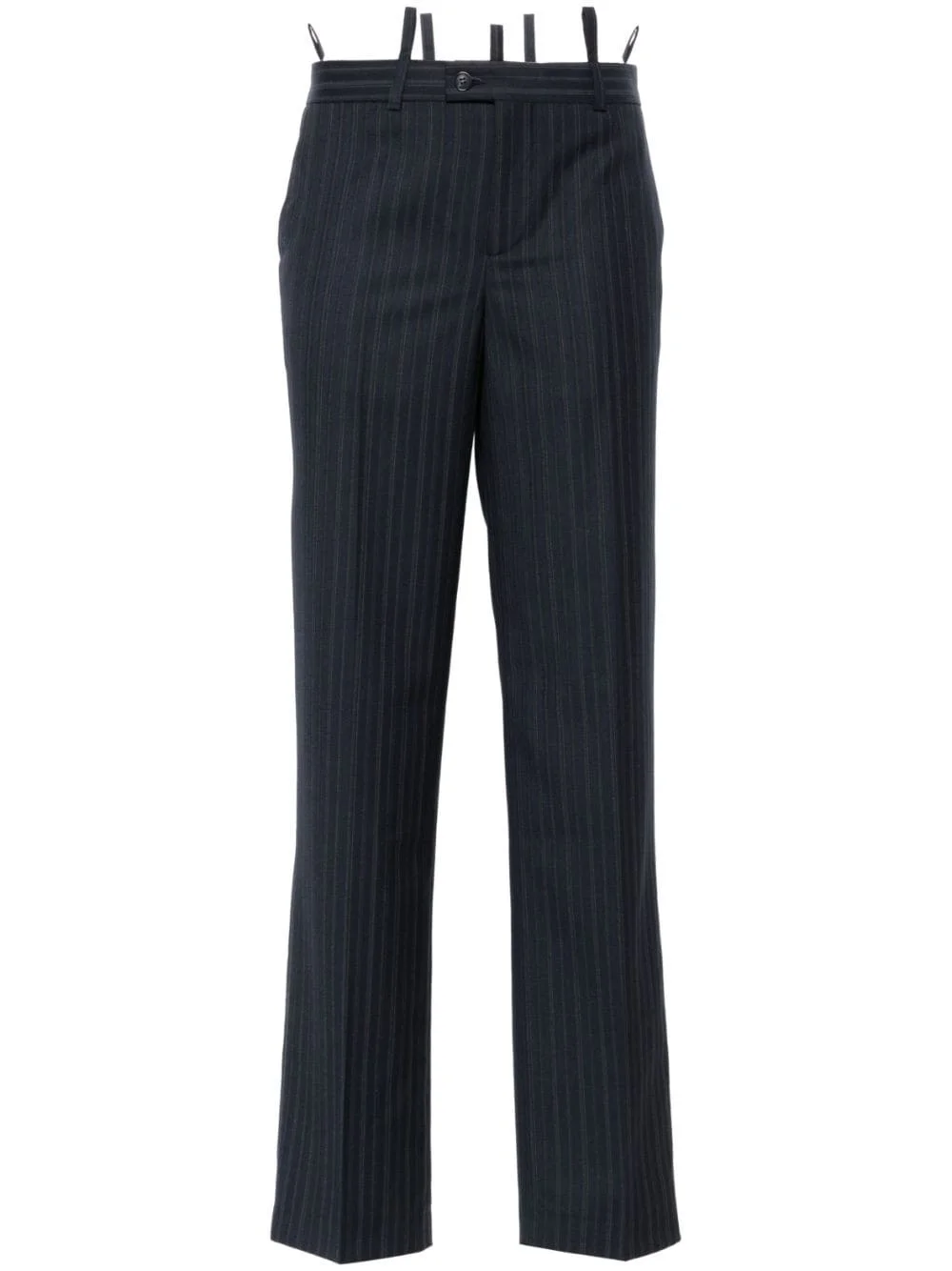 pinstriped tailored straight trousers Highlights - Navy blue - Pinstripe pattern - Tailored design - Belt loops - Multiple loops detail - Two side slash pockets - Pressed crease - Full-length - Two rear button-fastening jetted pockets - Straight leg - Front button and zip fastening Imported Composition Polyester 60%, Wool 40% SIZE & FIT Model measurements Height 5 ft 9 in(1.76 m) Bust/Chest 31.88 in(81 cm) Hips 35.43 in(90 cm) Waist 24.8 in(63 cm) FittingInformation Designed for a straight-leg fit, these trousers allow for a close fit at the waist and an unrestricted, comfortable fit over the leg Made from a midweight non-stretch fabric This piece fits true to size – take your usual size