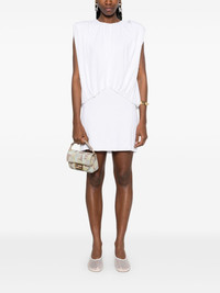gathered-detailed mini dress Highlights - White - Hook fastening - Crew neck - Shoulder pads - Sleeveless Imported Composition Viscose 100% SIZE & FIT Model measurements Height 5 ft 10 in(1.78 m) Bust/Chest 31.49 in(80 cm) Hips 37 in(94 cm) Waist 23.62 in(60 cm) FittingInformation Designed for a loose fit at the chest with a close fit over the waist and hips The internal shoulder pads offer a structured shape Made from a midweight non-stretch fabric