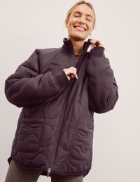 Two is better than one. Wear the classic bomber style 2-Way Quilted Jacket with the soft boucle fleece facing in or out. - Rib cuffs and collar - Curved shirttail - Bomber-jacket style silhouette - Front patch pockets on one side, welt on the other side - Every style we produce is wear-tested on our in-house team to ensure your best fit Fabric: Lightweight and perfect for layering, our quilted nylon fabric is water-repellant and durable to stand up to the elements on outdoor adventures. Quilted Nylon: 100% Nylon Boucle: 100% Recycled Polyester