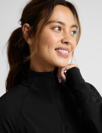 Keep moving in the cold in the Pacer Fleece-Backed 1/4 Zip Pullover. The fitted pullover has zipper pockets to keep your essentials secure, a high collar, and a fleece brushed interior for extra warmth. - High collar with 1/4" zip - Contouring style lines - Zipper pockets - Cuffs with thumbholes - Fitted, Classic Length Fabric: Pacer Fleece SHOP ALL An active-to-anywhere fleece fabric that stretches with you through chilly mornings. Breathable and soft, with a smooth exterior and warm brushed interior to keep you moving wherever your cool days take you. 77% Recycled Polyester, 23% Spandex