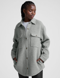 Built for bundling up. Stay warm in the relaxed-fit Insulated Wool Shirt Jacket with a long length to layer over everything including your favorite set. - Button front closure, chest pockets, and cuffs - Collar neckline - Shirt-tail hem - Relaxed fit - Long length Fabric: A warm, heavyweight lifestyle fabric knit from premium Italian wool, perfect for layering through cool weather. 75% Wool, 25% Nylon