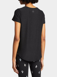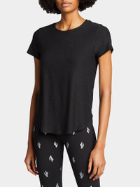 Beyond Yoga "On the Down Low" tee in soft, featherweight jersey with back logo. Crew neckline. Short sleeves. Relaxed fit. Pullover style. Polyester/spandex. Imported. Online Inquiries: BGS21_T13X8| Store Inquiries: #3620442