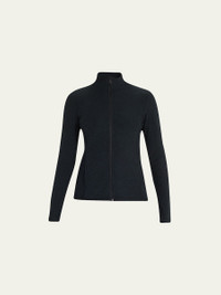 Beyond Yoga "On The Go" jacket in spacedye performance fabric. Moisture-wicking, UV protection, and 4-way stretch. Mock neckline. Long sleeves. Full-zip front. Inseam pockets. Relaxed fit. Polyester/Lycra® Xfit spandex. Imported. Model is 5'10"/177cm. Online Inquiries: BGS21_T4MWF| Store Inquiries: #4046357