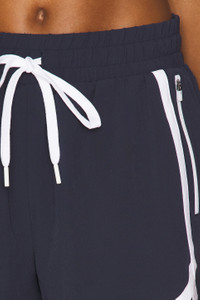 - Self: 86% polyester 14% elastane Lining: 78% polyester 22% elastane - Machine wash - Elastic waistband with exterior drawstring closure - Side zip pockets - Colorblocked trim - Midweight jersey activewear fabric - Item not sold as a set - Shorts measure approx 12.5" in length - Revolve Style No. BEYR-WF64 - Manufacturer Style No. NN5155