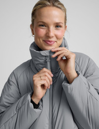 Say hi to the jacket you'll wear all winter. Made from 100% polyester that's warm, lightweight, and water repellant, the new cocoon-shaped Warm Up Puffer Jacket has a bubble hem and high collar, so you'll stay perfectly cozy out in the elements. - Cocoon shape puffer - Bubble hem - High collar - Elasticated sleeve hem at interior - Front zipper pockets - Curved sleeves - Grosgrain details Fabric: Warm Up Puffers Warm-yet-lightweight that delivers on keeping you cozy. - 100% Polyester - Lining: 88% Polyester, 12% Elastane