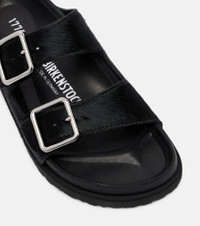 Instantly recognizable for their dual buckled straps, the Arizona slides from Birkenstock 1774 have transcended generations as the ultimate off-duty essential. This pair is made from black calf hair with anatomically-shaped cork-latex footbeds. Product Details - Upper: calf hair - Lining: leather - Sole: leather insole, cork and rubber sole - Toe shape: round open toe - Made in Germany - Includes: dust bag, shoe box - Designer color name: Black - Item color: black - Item number: P01119684 Size & Fit - True to size - Half sizes please take the next size up - European sizes - Birkenstock width: narrow fit - 2,5cm-1" platform (size EU 38)