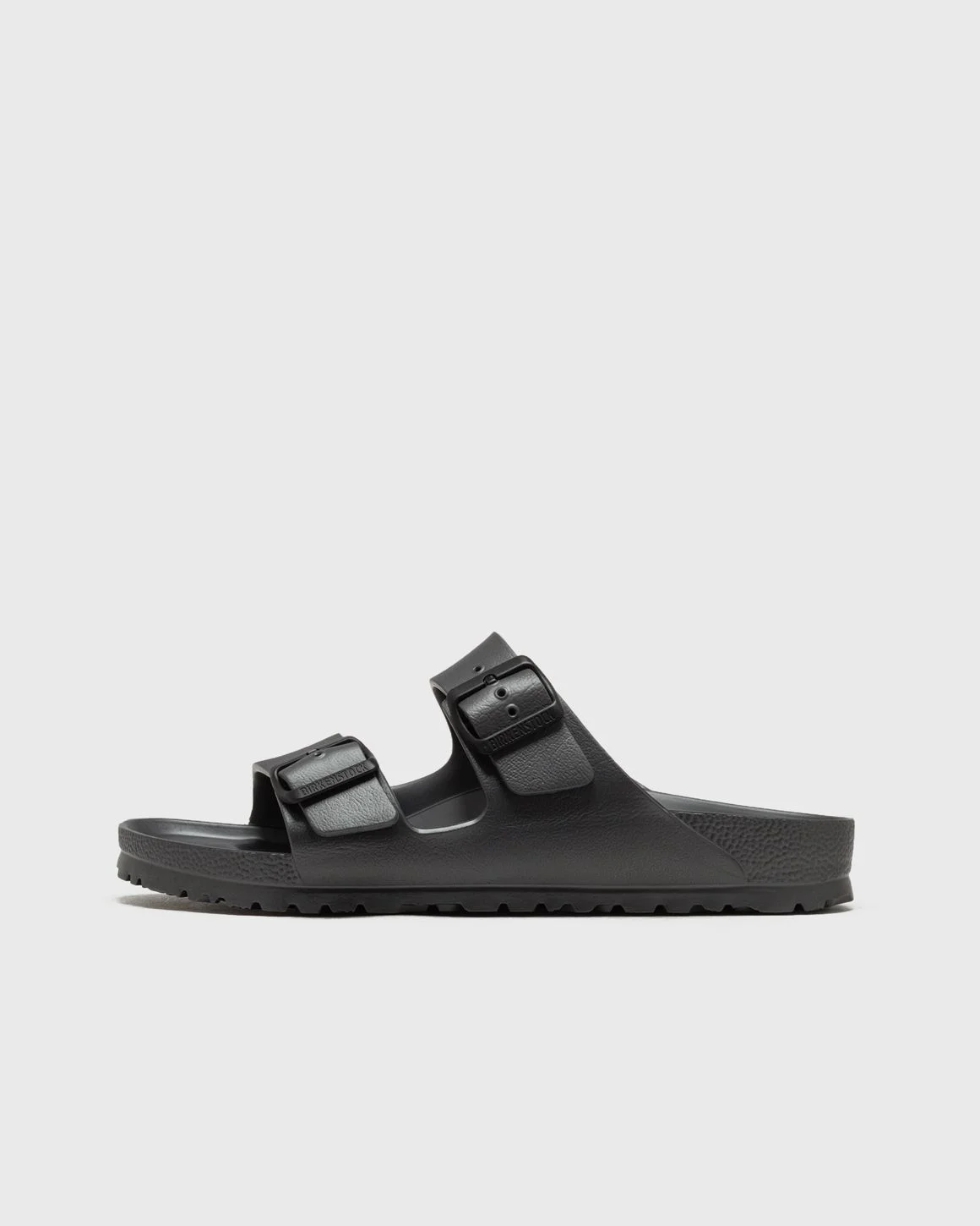 The Birkenstock Arizona is a real classic. Modeled on the cork sandal, this version is made of EVA. The high-quality, odorless and pollutant-tested EVA plastic combines many positive features: it is very light, highly elastic, waterproof, skin-friendly and offers the usual Birkenstock comfort. - Anatomically shaped footbed made of EVA - Upper material/insole/sole: EVA from a single cast - Waterproof, washable, ultra-light - Made in Germany Article Number: 1001498 Gender: Women Color: anthracite Material: 100% Plastic