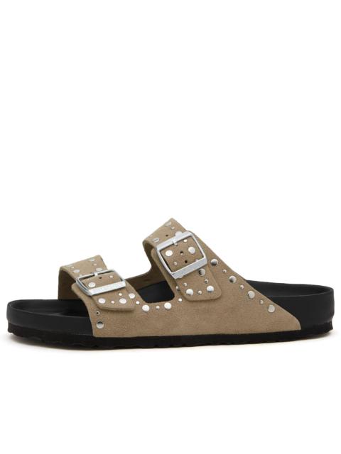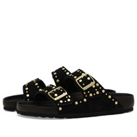 Say hello to Birkenstocks with a metallic twist - the Arizona Rivet. Crafted from soft suede with that iconic moulded footbed for all-day comfort, these slides have gold-toned rivets and matching engraved buckles for a custom fit. - Suede Uppers - PEVA Sole - Gold-Tone Stud Embellishment - 2 Buckle-Strap Fastenings - Moulded Footbed - Engraved Branding - Made in Germany