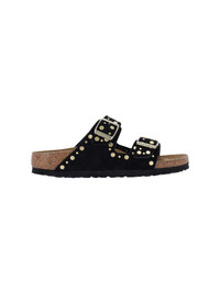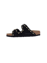 BIRKENSTOCK ARIZONA RIVET SANDALS IN BLACK LEATHER WITH OPEN ROUND TOE, TWO ADJUSTABLE UPPER STRAPS, ALL-OVER METAL STUDS, LOGO ENGRAVED ON THE BUCKLE, SLIP-ON FIT, ANATOMICAL CORK AND LATEX FOOTBED, EVA RUBBER SOLE. PRODUCT INFO PRODUCT CODE 1030348BLACK COMPOSITION: 100% LEATHER MADE IN: GERMANY - SOLE: 100% RUBBER