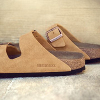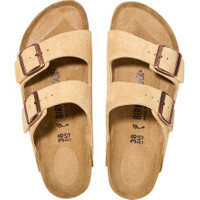 The original Arizona Suede Sandal is a classic statement piece that pairs great with shorts in warm weather and sock when the leaves begin to drop. With arch support, big metal buckles, and a cork midsole, you can count on stepping into a classic style that delivers optimal comfort while you embrace everything life has to offer. Details - Iconic sandals with classic style and legendary comfort - Suede uppers and lining provide long-lasting durability - Contoured cork footbed conforms to the shape of your foot - Pronounced arch support reduces fatigue during long days - Lightweight cushioned soles offer shock-absorbing benefits - Item #BRK004O Tech Specs Upper Material: suede Last: regular/wide Footbed: suede Arch Support: yes Midsole: cork Sole: EVA Closure: slip-on