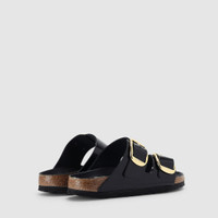 - Narrow fit - Black - Patent Leather - Double Strap with Adjustable Metal Buckles - Contoured Footbed - EVA Sole - Birkenstock Branding For a chic yet casual look to your footwear, you can’t go wrong with the Arizona Patent Black Sandals from Birkenstock. Boasting a smooth double strap upper fitted with adjustable metal buckles, these classy slip-ons will keep your feet cushioned in comfort with their contoured footbed that’s designed to help circulation and posture. To finish, the brand’s iconic lightweight EVA sole in matching white lends one more sleek layer of luxe comfort to the sandal, making it perfect to style with your day or evening casuals. Signature Birkenstock branding is seen throughout. Birkenstock follows its own size guide, please refer to below: - IT 35 = UK 2.5/ US 4 - IT 36 = UK 3.5/ US 5 - IT 37 = UK 4.5/ US 6 - IT 38 = UK 5/ US 7 - IT 39 = UK 5.5/ US 8 - IT 40 = UK 7/ US 9 - IT 41 = UK 7.5/ US 10 - IT 42 = UK 8/ US 11
