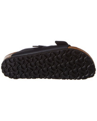 - Color/material: black faux leather - Adjustable ankle strap with buckle closure - Original Birkenstock suede-lined natural cork footbed that molds and shapes to your foot, featuring pronounced arch support, deep heel cup, and roomy toe box. - Man-made sole - Made in Germany - WARNING: - CA Residents - Prop 65